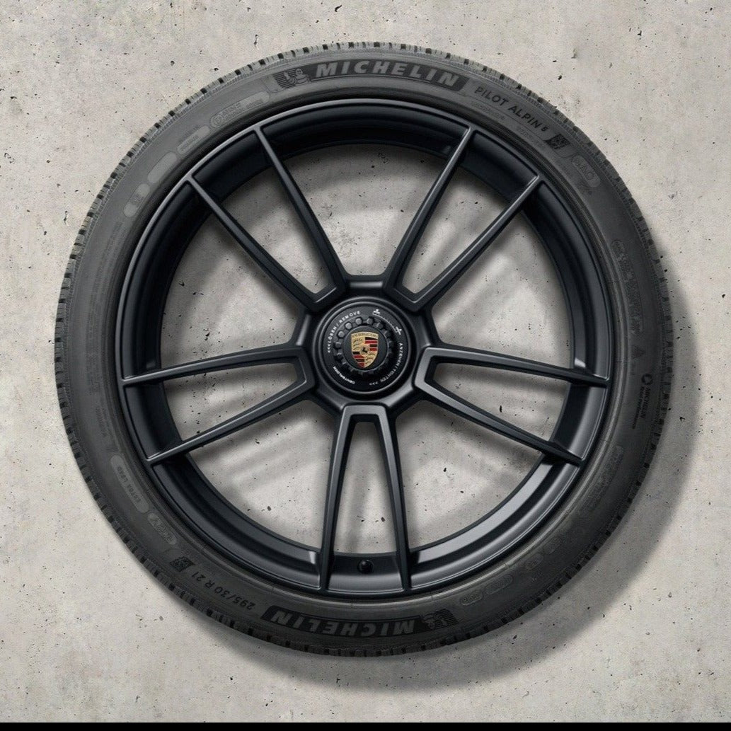 Complete set with TPM Sensors and Porsche-approved Michelin winter tires.