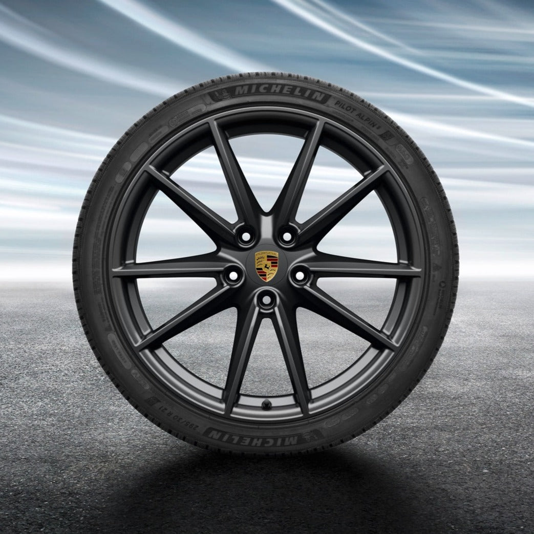 Complete set with TPM Sensors and Porsche-approved Michelin or Goodyear winter tires.