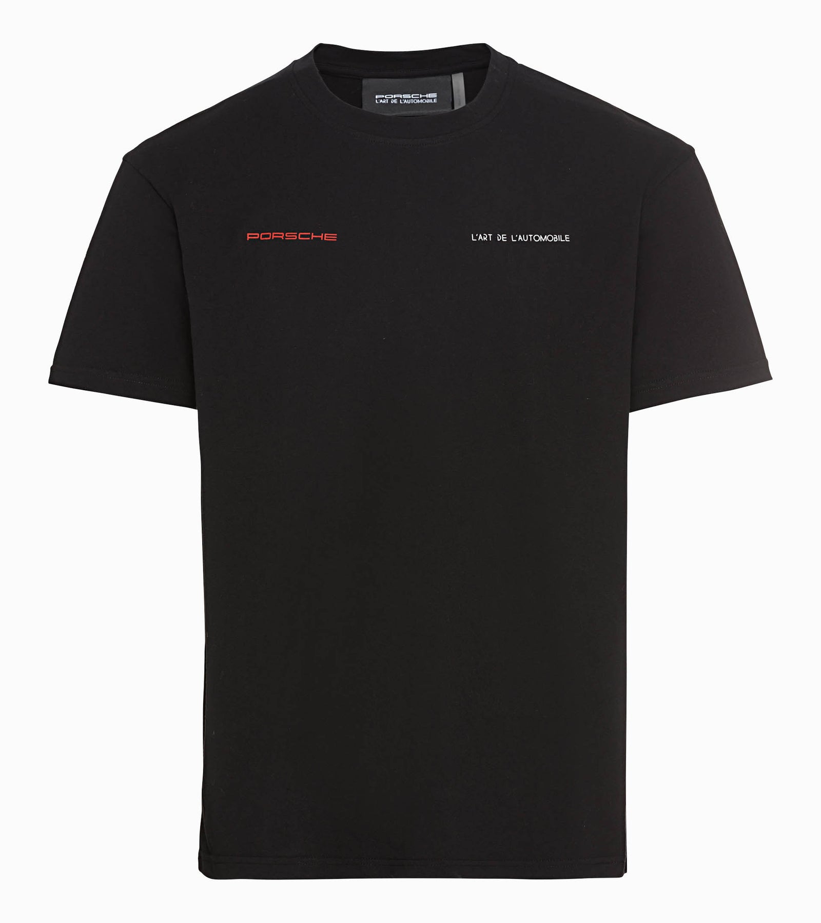 A genuine eye-catcher: the unisex T-shirt from the 968 L'ART Collection by L'Art De L'Automobile x Porsche. Thanks to the multi-coloured KAR print on the back, this is not only a more casual t-shirt but also a more striking one for everyday and leisure wear.