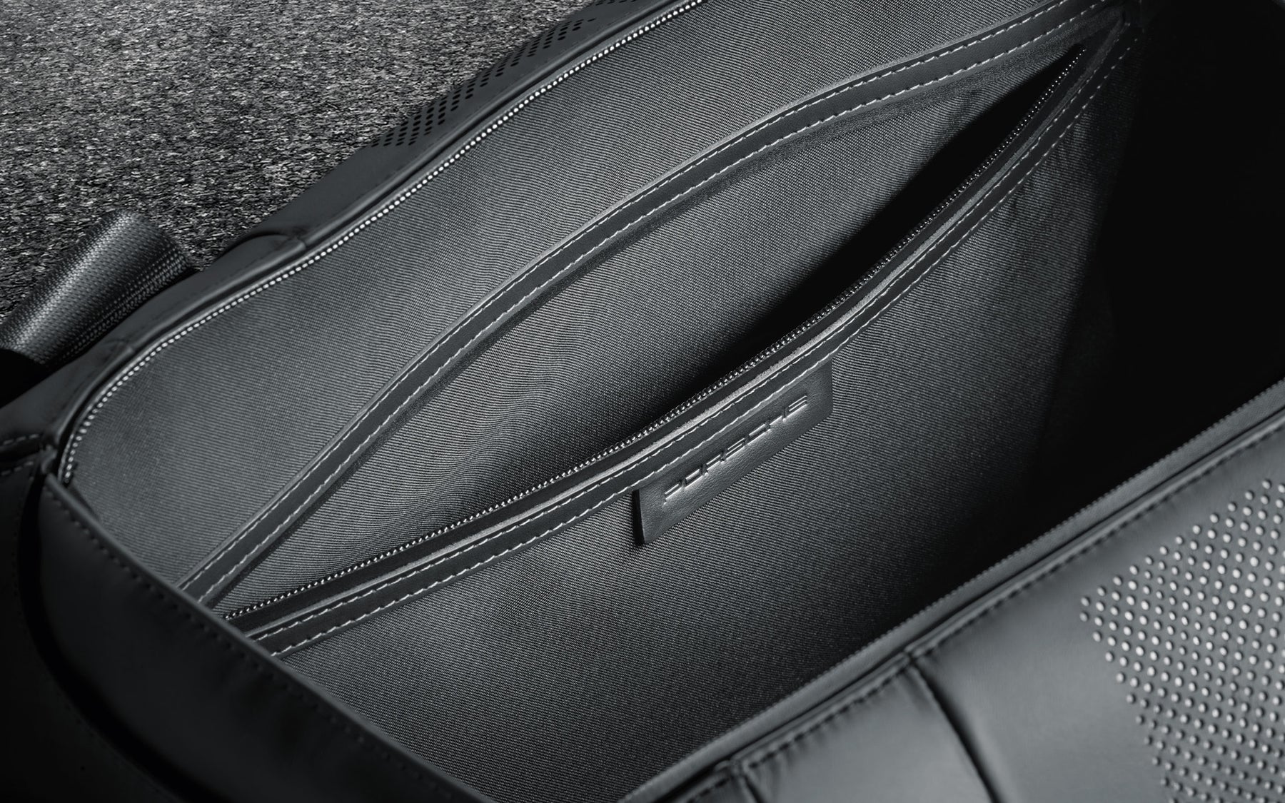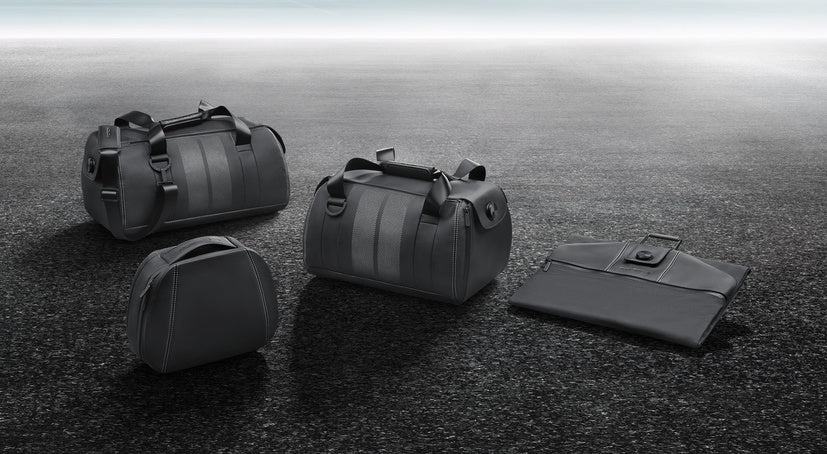 All luggage items are made from high-quality leather (in black) and feature silver decorative stitching and silver-edged perforations.