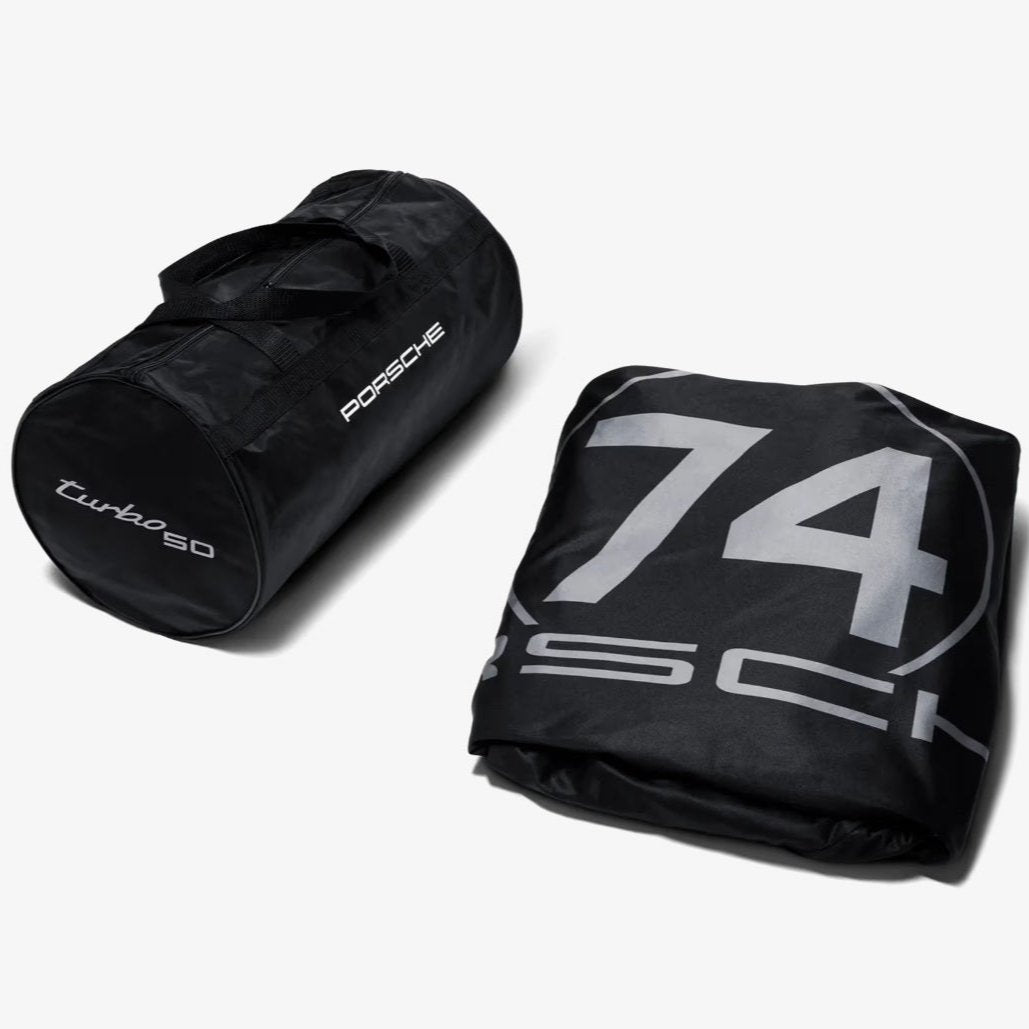 The special indoor car cover including steering wheel cover was developed as part of the "50 years of Turbo" anniversary and the Porsche 911 Turbo 50 years limited to 1974 units. With piping, "turbo" lettering on the side and a coloured Porsche crest on the boot lid. Naturally, the black indoor car cover and the steering wheel cover are cut to fit perfectly and are made from breathable, anti-static and dirt-repellent material.