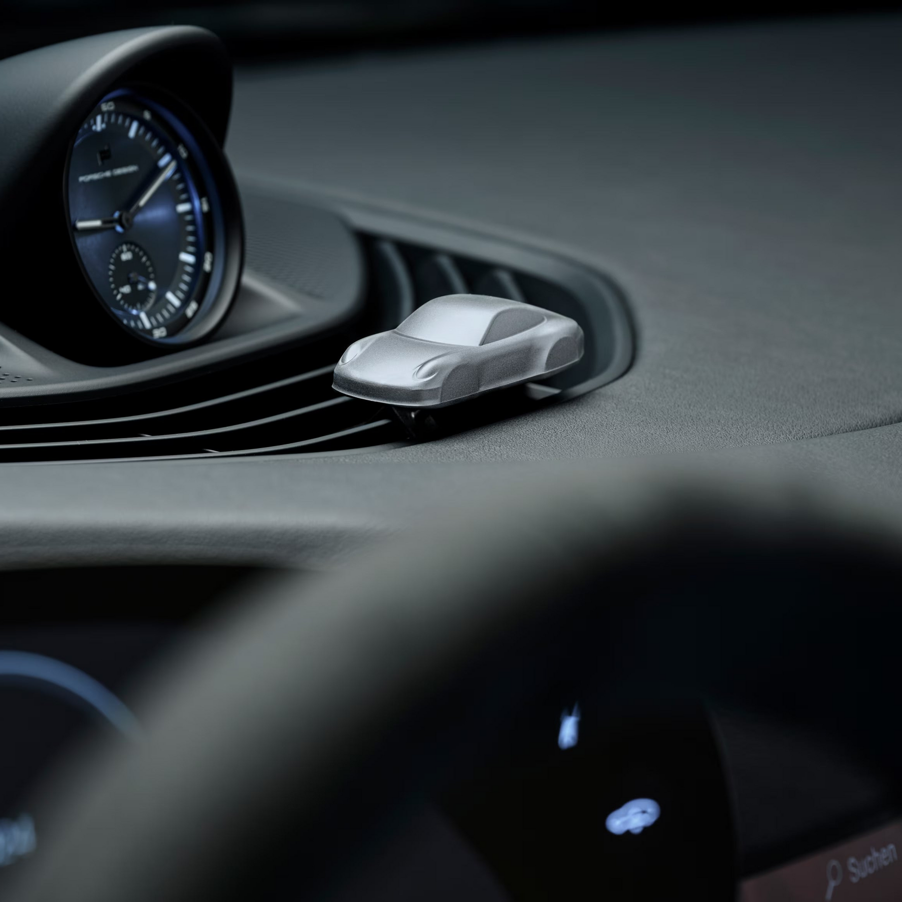 The exclusive Porsche car fans make driving your Porsche even more unique and ensure a pleasant scent in the passenger compartment. The Air Freshener was developed specifically for Porsche. Available in the original 911 design in different color variants, they are easily secured in the air grille and utilize the air flow of your car’s ventilation to create a pleasant scent.