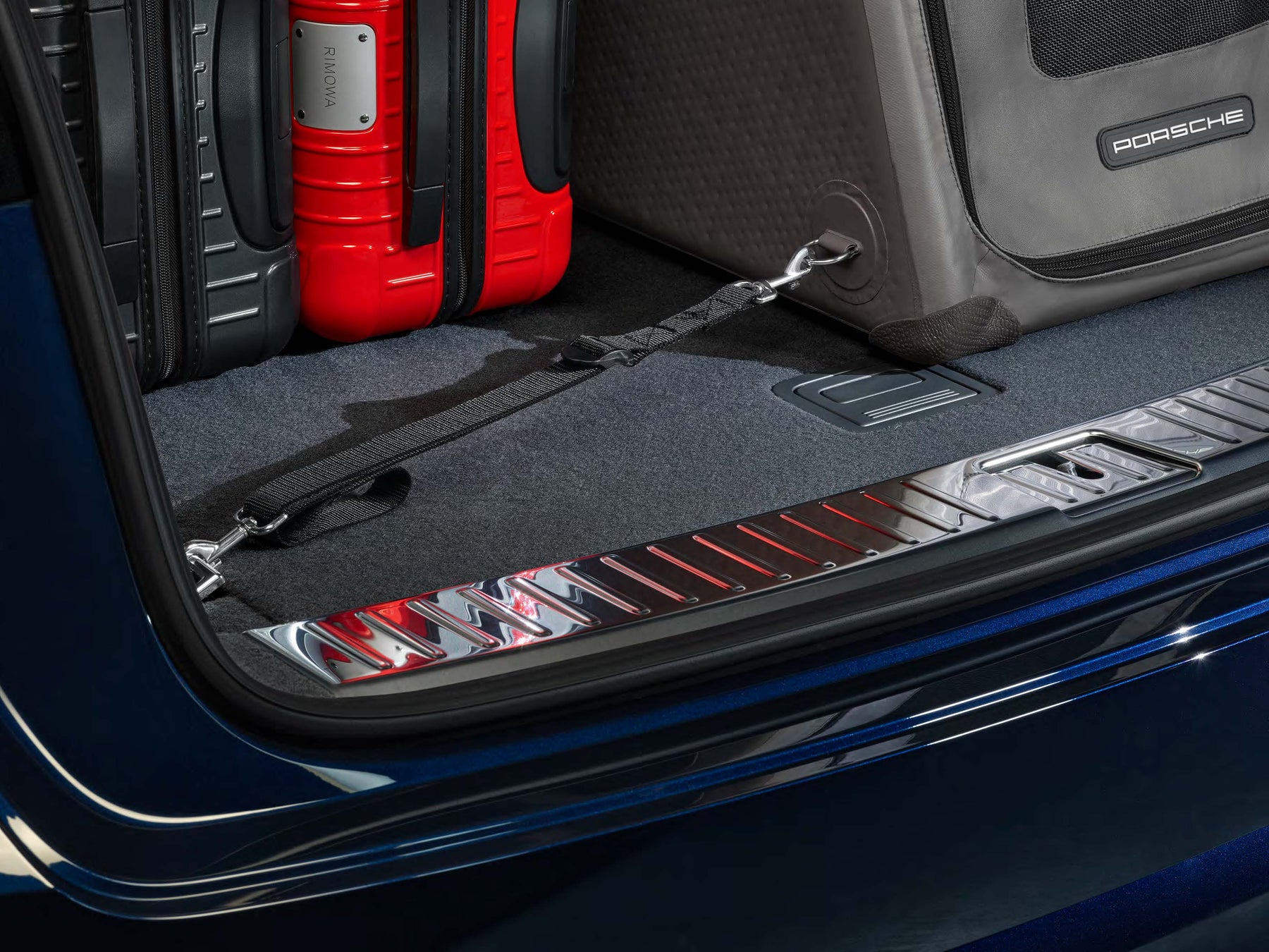 - Luggage compartment box for dogs made of dropstitch material in gray with “PORSCHE” logo