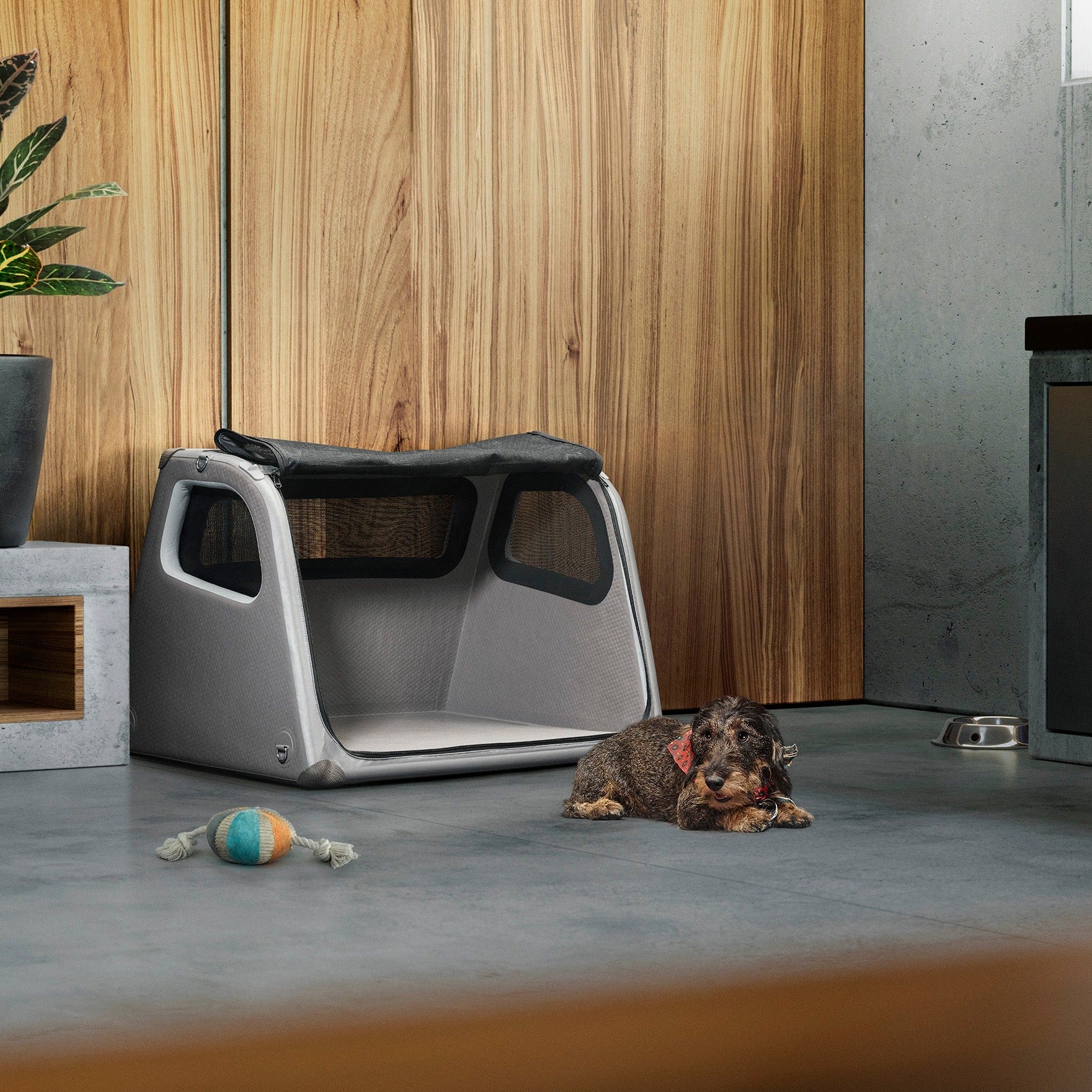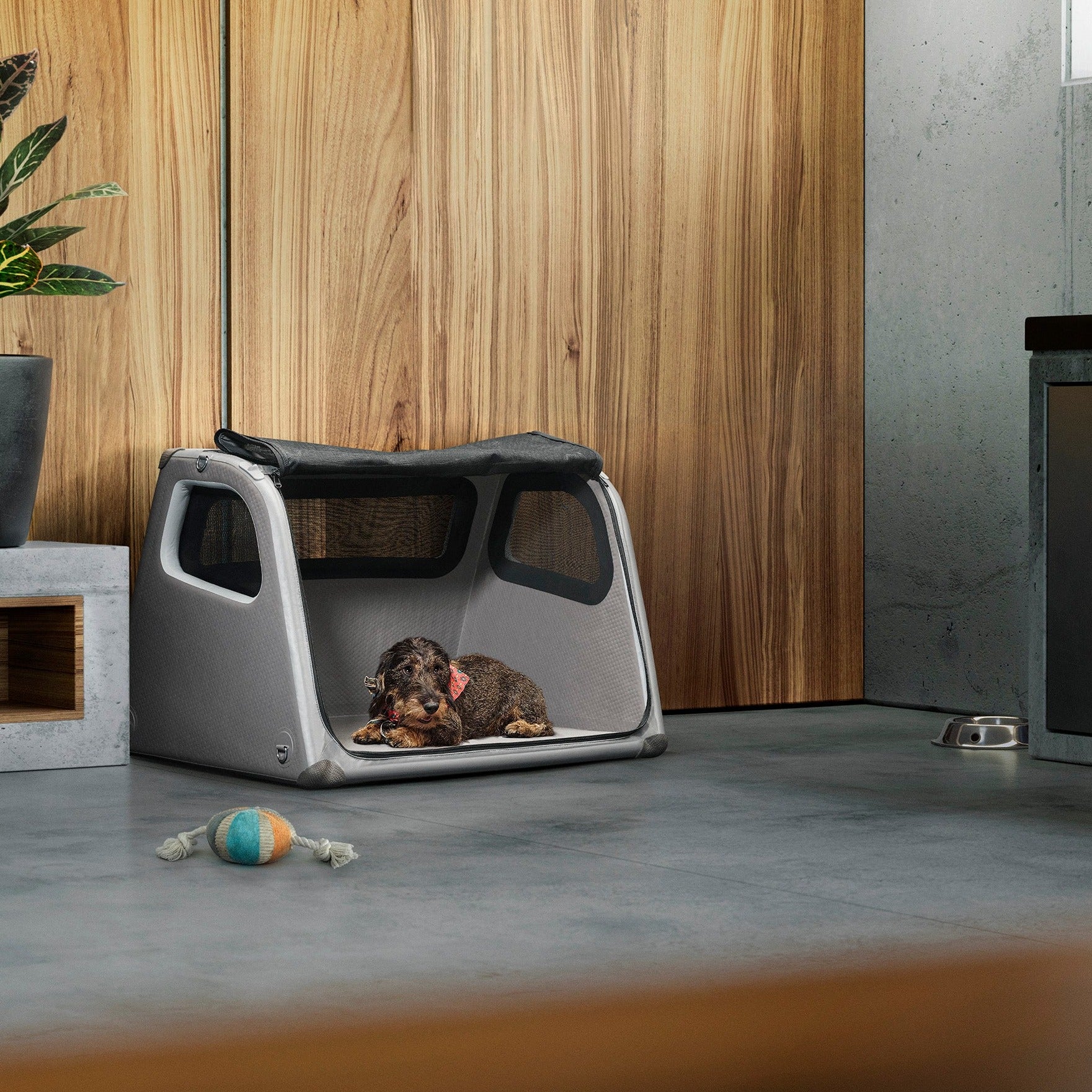The luggage compartment box for dogs is also suitable for use outside the vehicle. For example, it serves as a place to sleep at home or as a familiar place to retreat while traveling.
