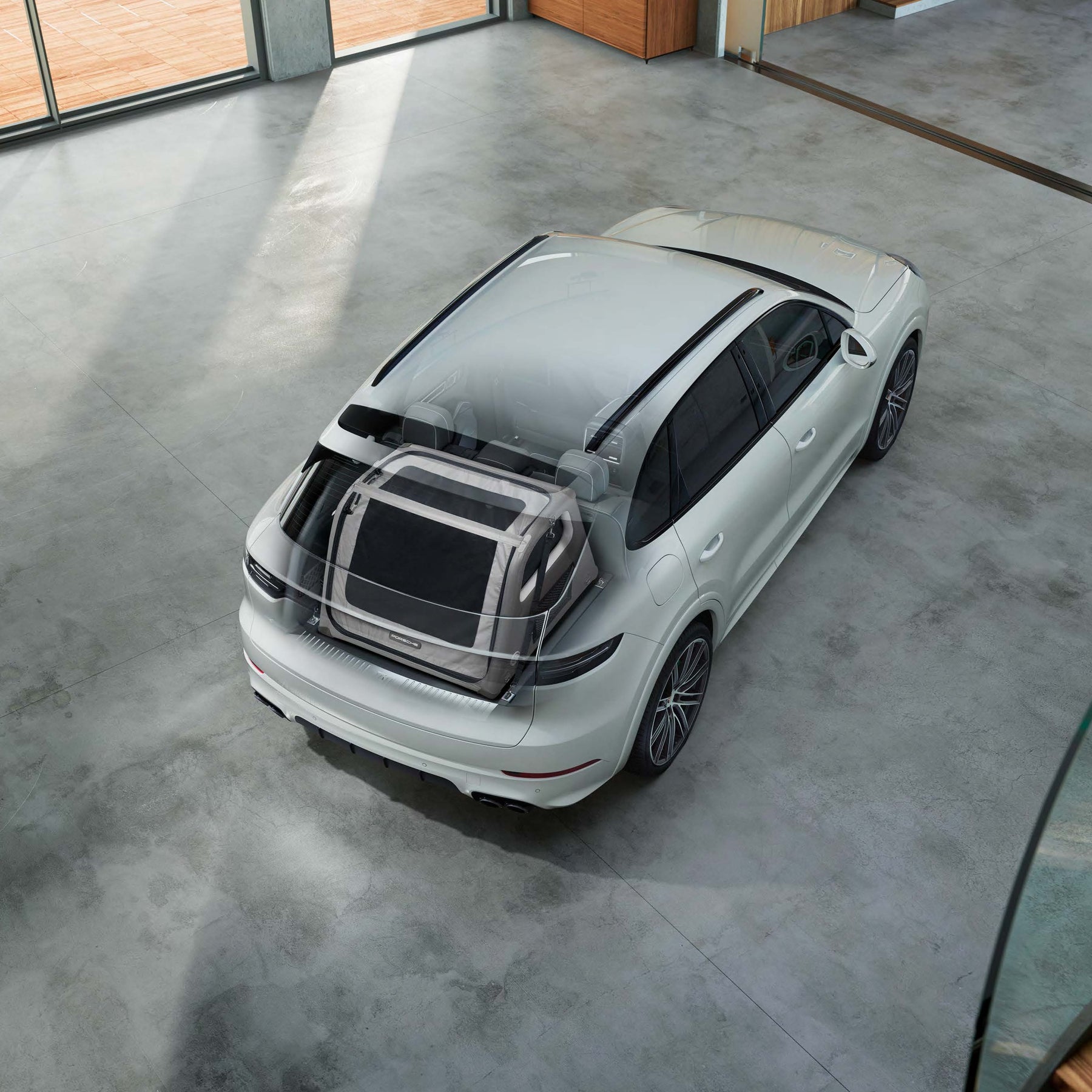 The inflatable Porsche trunk box allows dogs of different sizes to be transported easily and safely.