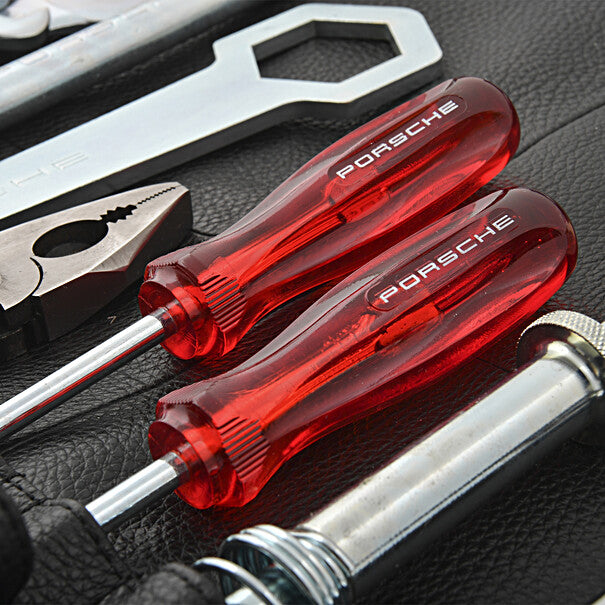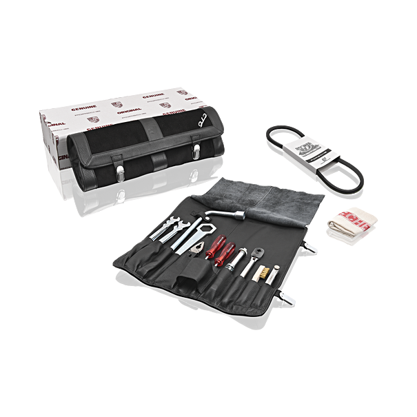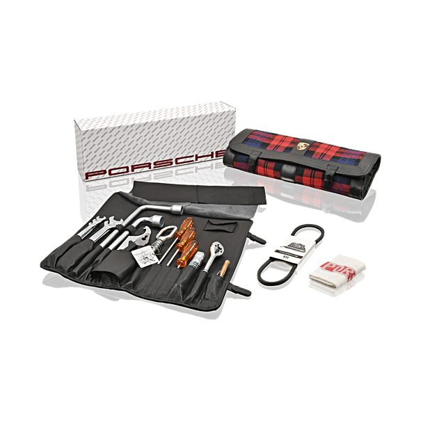With the development of the tool bag for the 912, Porsche Classic responded to numerous customer inquiries at various Porsche Classic events. And of course the classics also gave this bag an unmistakable look, which is characterized by the combination of leather and corduroy. This fabric was once used for the center panels of the 912's seats. In addition, on the outside, in addition to the Porsche emblem embossed in the leather, are the typical 912 letters once found on the hood of the vehicle. All tools for this new bag are also made according to original drawings from the original supplier.