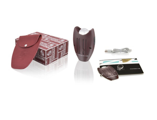 Hand lamp; suitable for all Porsche vehicles. Hand lamp designs are rarely as stunning as this: This new edition is based on an original hand lamp that was part of the accessories catalog for the Porsche 356 back in 1963. Featuring LED lights with two different lighting modes and battery operation, this hand lamp combines classic design with modern technology. The hand lamp also has a rubber-coated magnet for securely attaching it to the vehicle. Another eye-catching feature is the leather case embossed with the Porsche Crest. The design of the case is based on the original seat design from the Porsche 356, offering the perfect combination of timeless design and modern technology.