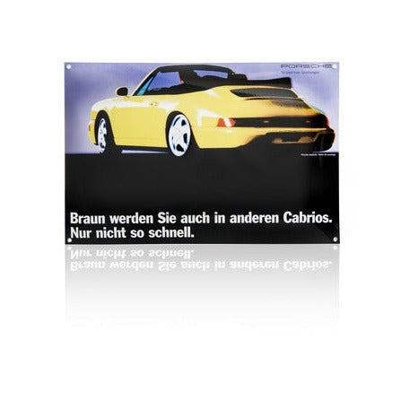 Classic decorative shield with the original promotional text for the 911 (964) of the time: "For more than 100 years, cars have made us independent. One is addictive." Nice to hang at home, in your office or on the wall of your garage.