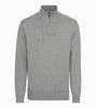 Perfect for everyday: knitted jumper with stand-up coller and zip. Ribbed cuffs at collar, sleeve and hem. Porsche logo embroidery in light grey on the left chest.