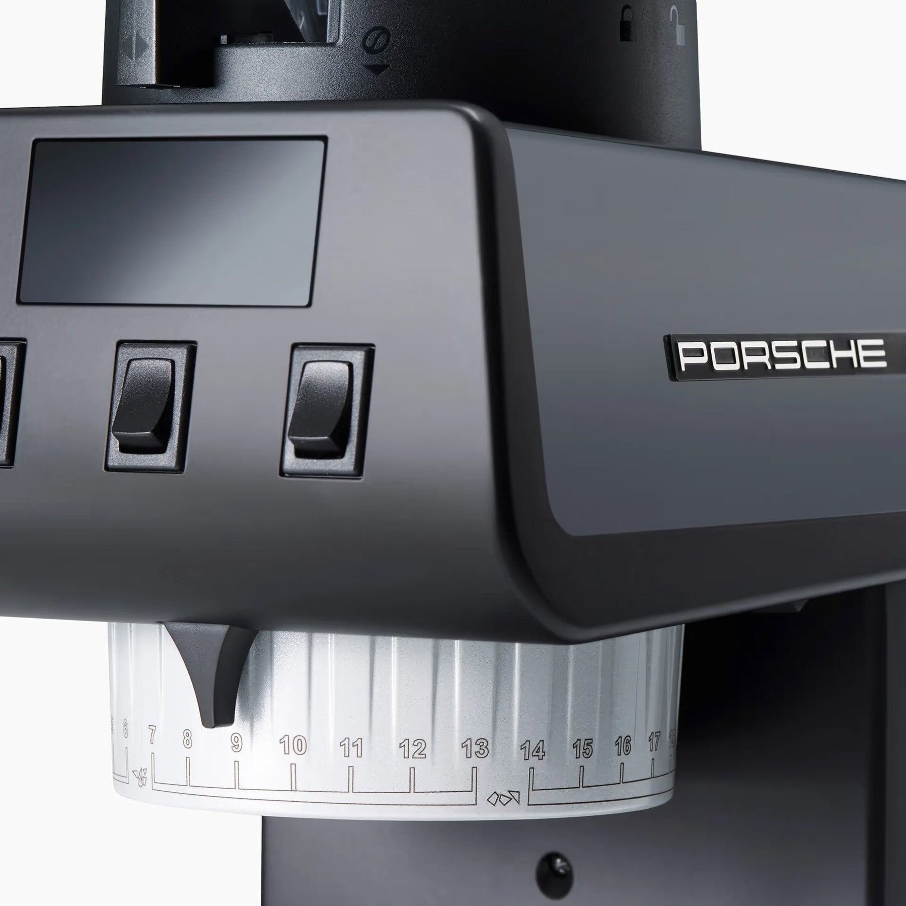 A must-have for every barista and Porsche fan: the Porsche La Marzocco Pico espresso grinder impresses in the newly launched Porsche vehicle color slate grey neo and the unmistakable partnership logo. Both the simple operation and the top quality guarantee the perfect grind and reliably ensure an enjoyable espresso shot.