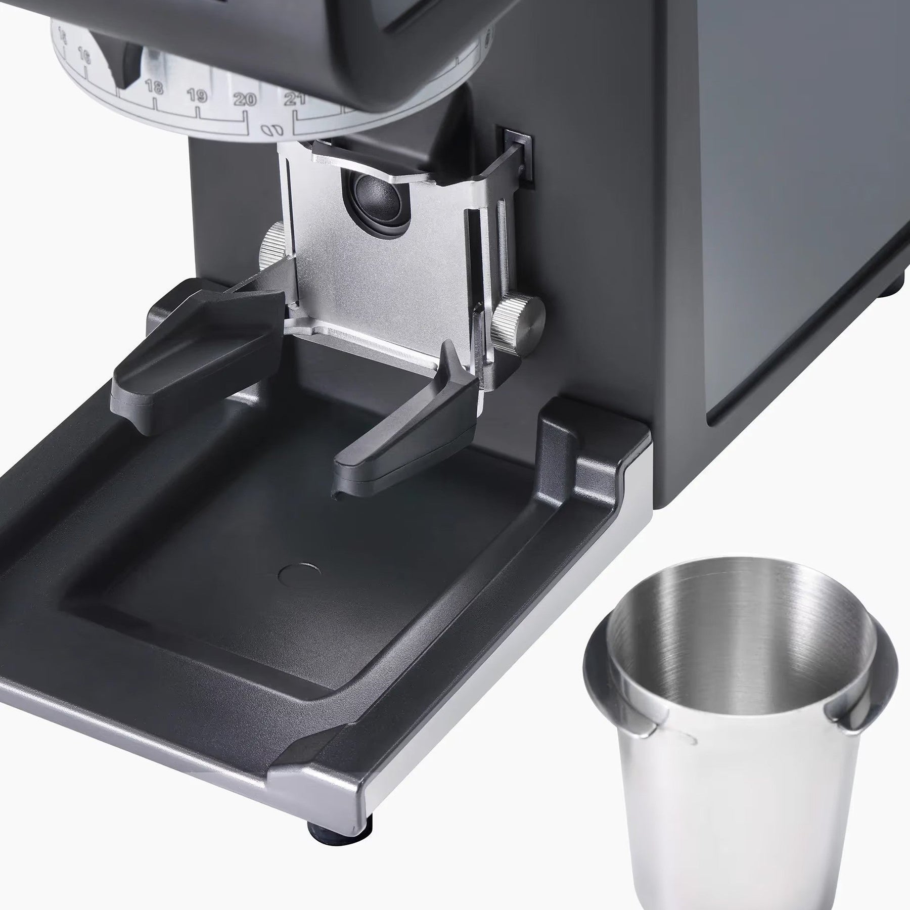 Every detail has been designed with dedication to guarantee exceptional coffee quality. Equipped with a noise-reduction brushless induction motor, Pico grinds beans with the utmost precision and quietness. The three-button programmable dosing selection ensures the ideal supply quantity for consistent enjoyment. The perfect grind can be adjusted effortlessly, manually using the stepped ring with click feeling. Unique features such as the adjustable, magnetic portafilter fork and the automatically closing hopper make handling intuitive and comfortable. Compact and elegant, this espresso grinder fits seamlessly into any kitchen and refines any morning routine.