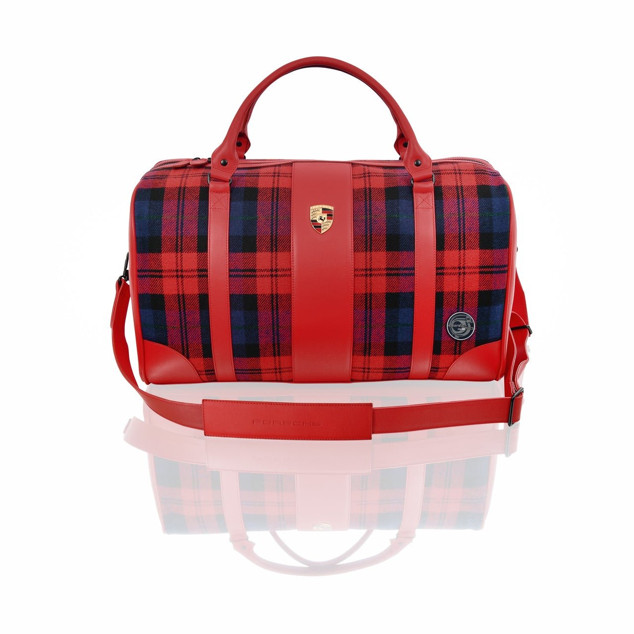 50 years of 911 Turbo: the limited-edition 911 touring bag from Porsche Classic is inspired by the famous tartan seat pattern from the first 911 Turbo, which featured a narrow body and was given to Louise Piëch to mark her 70th birthday. High-quality Red leather and a reduced 911 G crest give the touring bag a stylish finish. The 50th anniversary badge is located on the lower right edge.