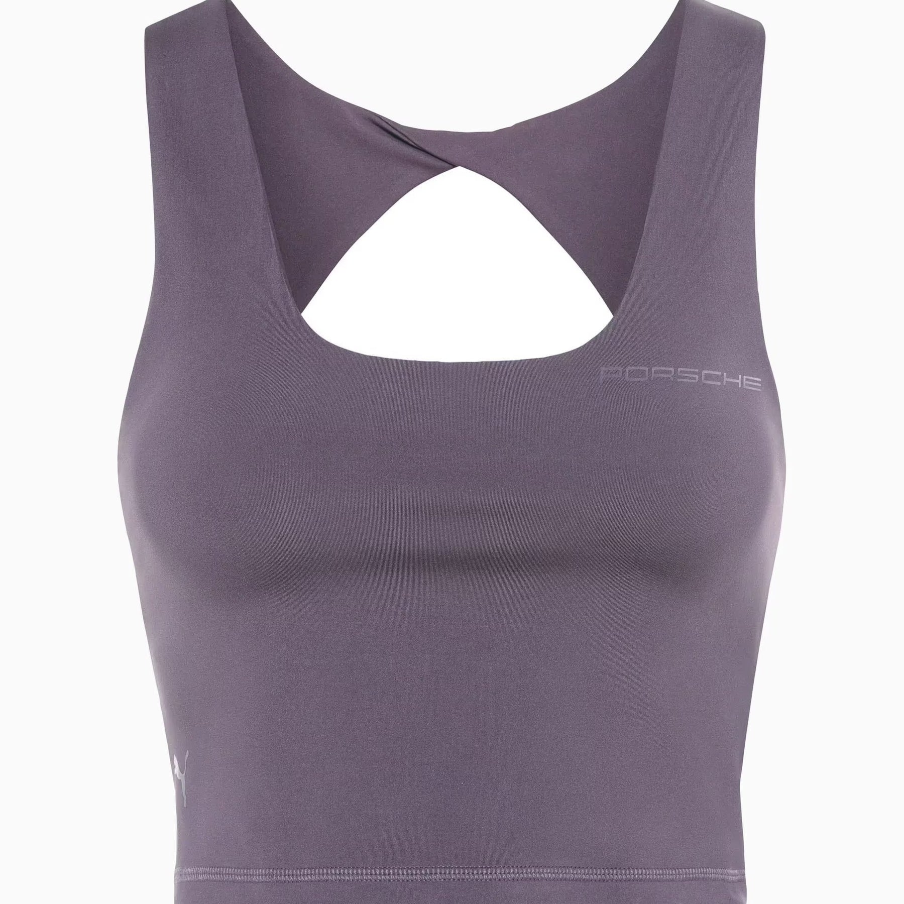 The perfect balance of style, inspiration and an active lifestyle: with its high-quality material and elegant design, the crop tank top encourages every woman to show her inner strength on the outside. The combination of ULTRABARE fabric and dryCELL® technology makes the crop tank top the ideal companion for sport activities. The extremely light and soft material wicks moisture away from the skin, ensuring a comfortable fit. With the integrated bra, the crop tank top becomes a must-have for all women who value comfort and functionality. Straps with an elegant twist on the back and the tonal Porsche branding on the chest are details that round off the sophisticated design. The colors Provence and Bramble were inspired by the exterior and interior of the Porsche Macan.