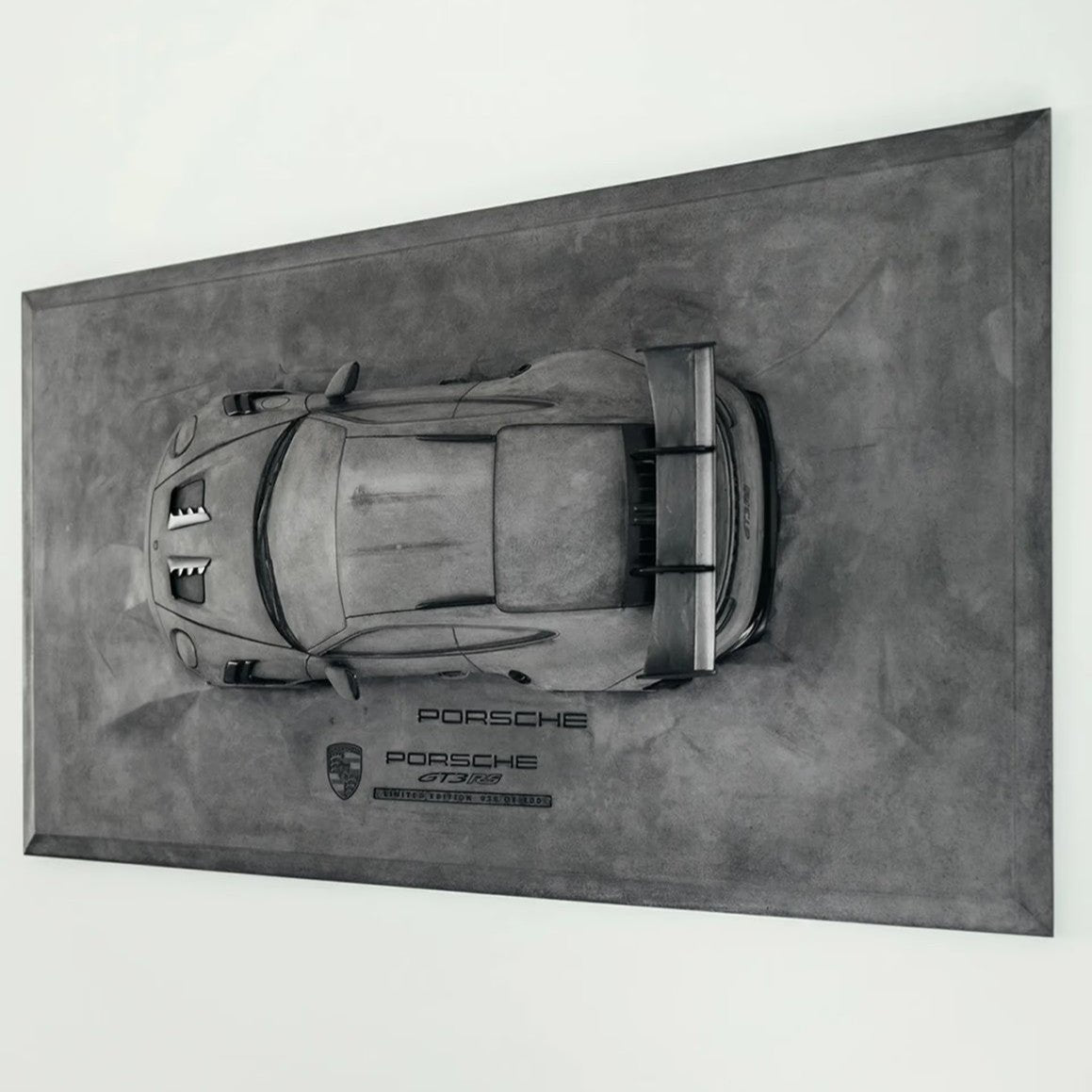 - Handmade concrete sculpture of the Porsche 911 GT3 RS (992) with Weissach package.