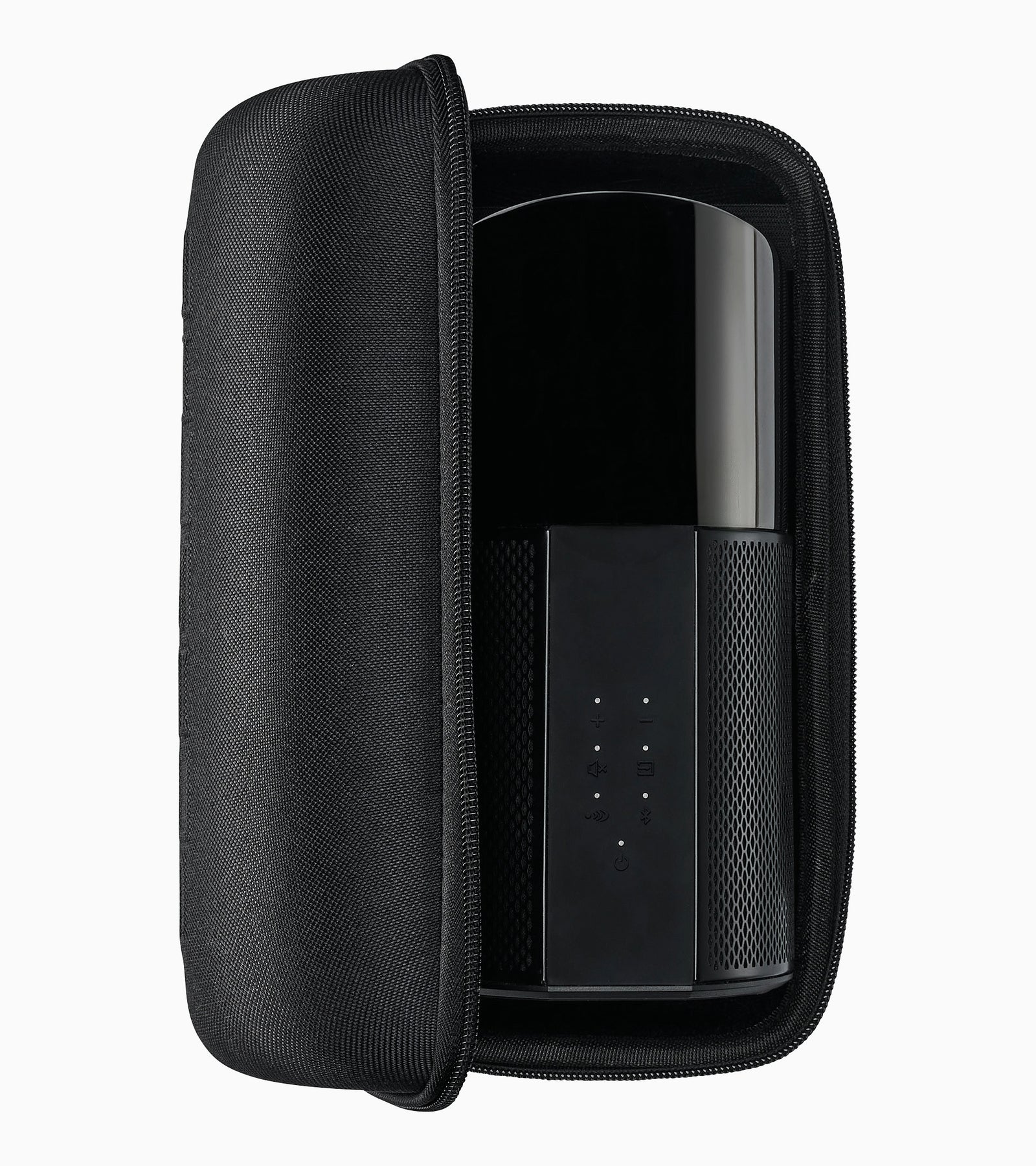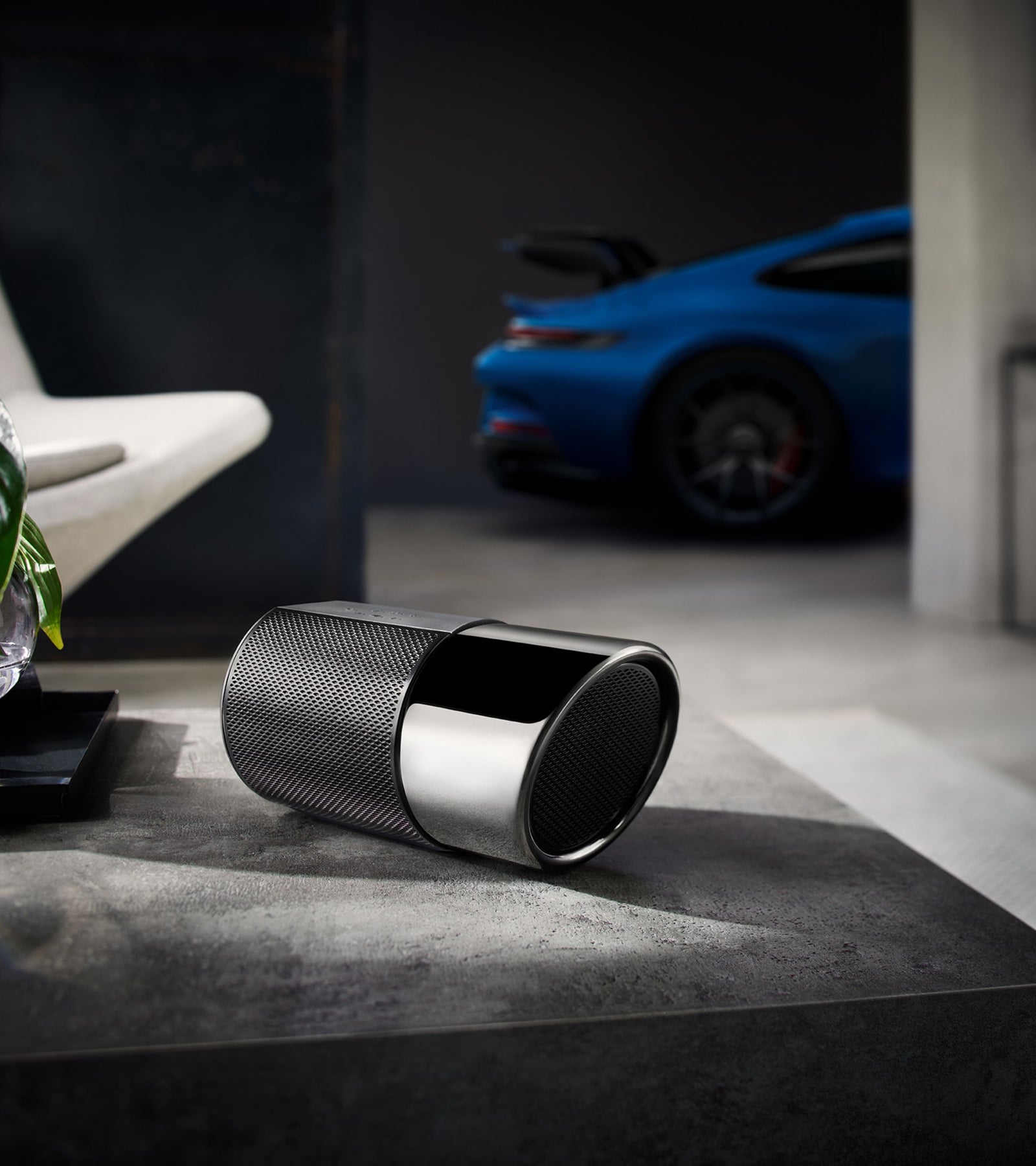 Music to the ears: this high-end Bluetooth speaker from Porsche Lifestyle epitomizes modern, smart design. The loudspeaker is made from high-quality materials based on the tailpipe trim of the 911 GT3 (992) and is a real eye-catcher. The surface is also based on the 911 GT3 (992). The speaker's Bluetooth® 5.0 and Qualcomm® aptX™ HD technology ensures impressive sound. Additional 911 Speakers 2.0 and other compatible Porsche Lifestyle sound products can be coupled with the integrated in-room wireless technology. With up to 16 hours of battery life, the Bluetooth speaker skillfully takes every musical curve, at home or on the go with the practical transport case. 60-watt system power. NFC technology. Including case.