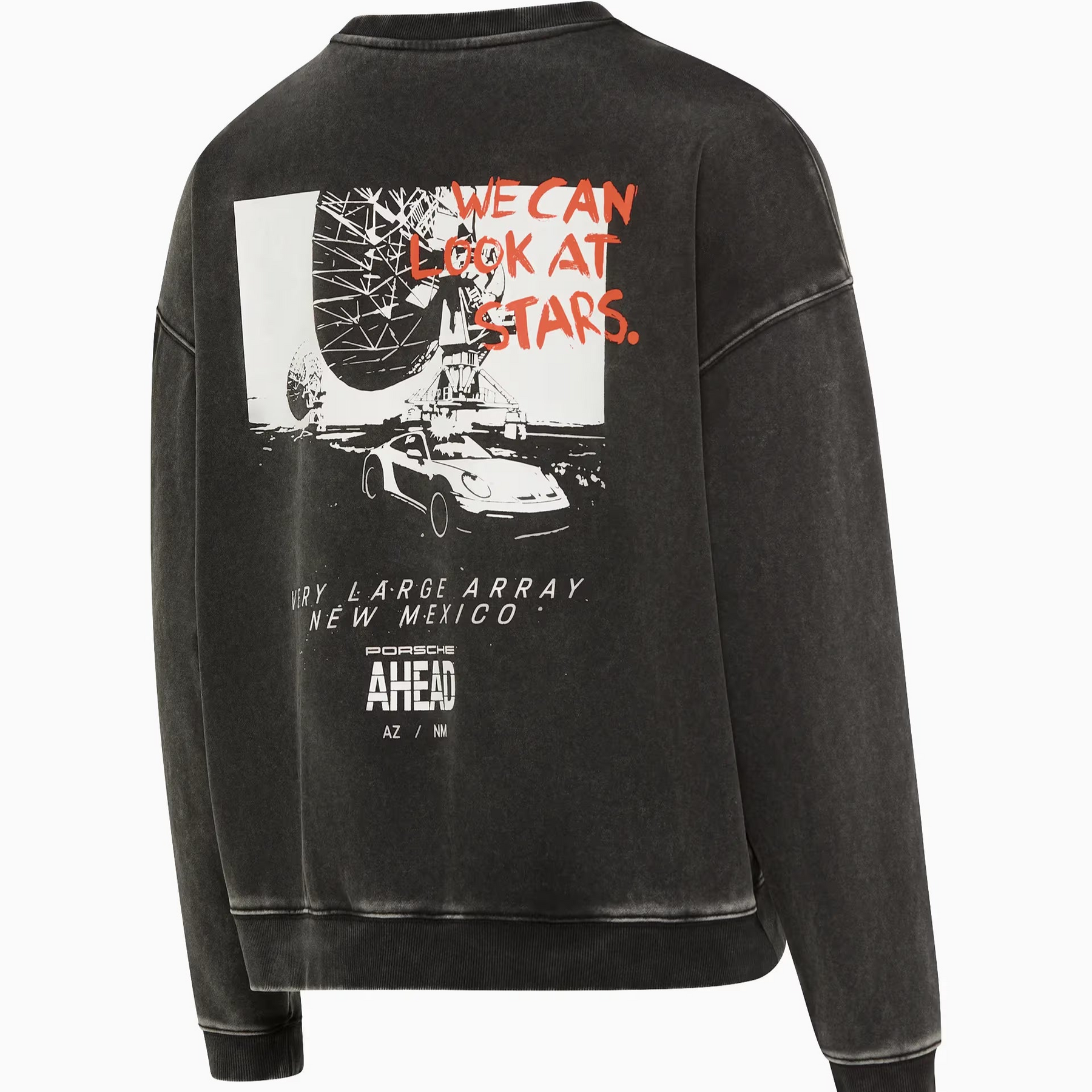 Road trip meets lifestyle: the AHEAD Collection combines pioneering spirit and a thirst for adventure with distinctive design. The unisex jump is very comfortable with its boxy cut and crew neck. The high-quality cotton fabric in a used look with lighter edges and seams gives the jumper a stylish look. The large print on the back with AHEAD lettering makes it a real eye-catcher. The design is rounded off by details such as the AHEAD logo on the left hem and the Porsche print on the front left at waist level.