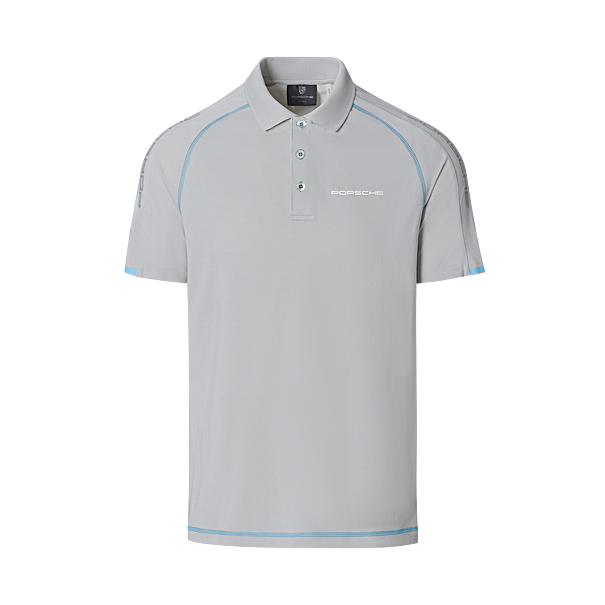 Polo shirt for men from the Sport Collection. This sports polo is made of functional, elastic, quick-drying and breathable material. The PORSCHE logo is on the chest and on the sleeves.