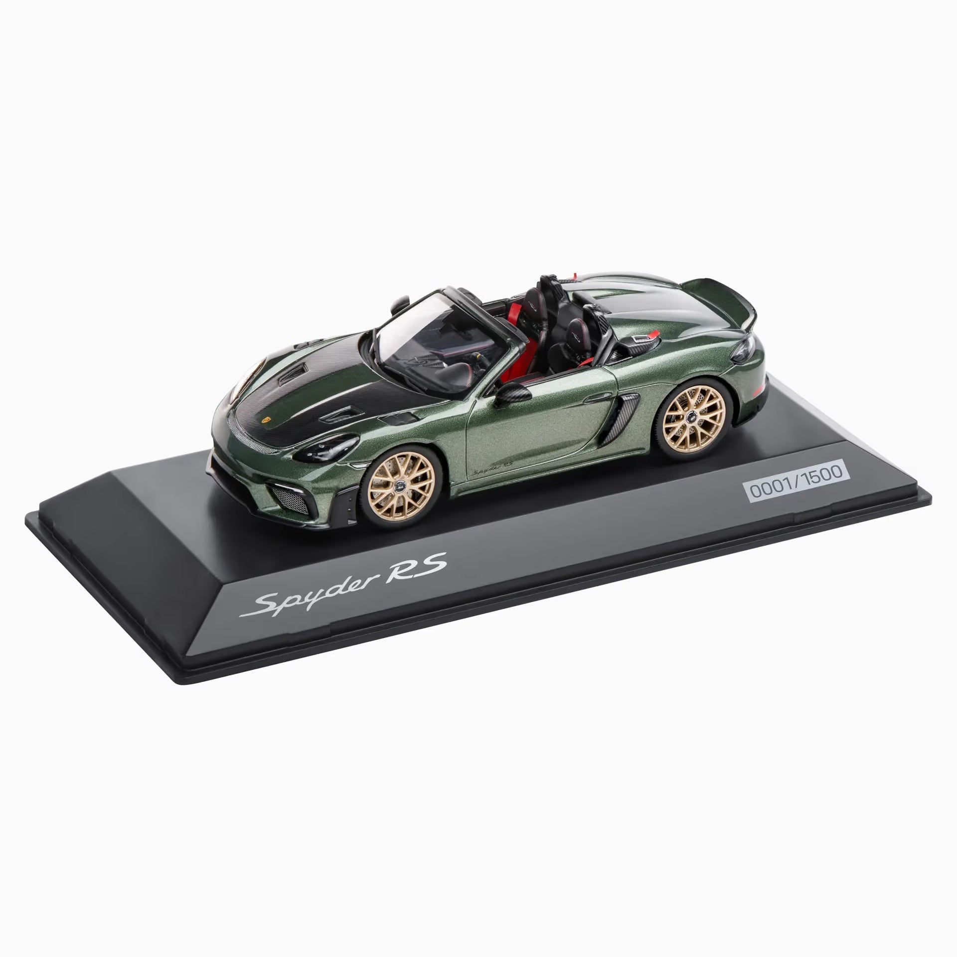 The exclusive model of the Porsche 718 Spyder RS (982) in a scale of 1:43 impresses with its attention to detail and is a must have for any collector. Its accompanying packaging also renders it an ideal gift for all Porsche enthusiasts. Exterior in nodrisch gold, interior in grey.