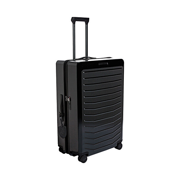 Ultra-light and inspired by the colors of the Porsche 911: the Roadster Hardcase collection, developed by Studio FA Porsche. This suitcase series is made of polycarbonate and is the perfect fusion between form, function and design. The Porsche Design Roadster suitcase Business trolley S in hand luggage format convinces with its slim construction, a weight of only 3.9 kg, its dynamic appearance and the Porsche Coat of Arms made of genuine leather. The front pocket for business equipment is equipped with a USB plug-in and offers space for a notebook, documents and any extras. The main compartment can be divided and expanded as desired. To protect your luggage, the suitcase is equipped with a TSA lock and an anti-theft zipper.