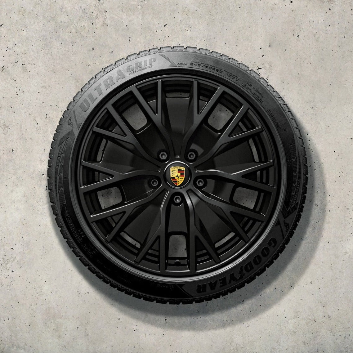 Complete set with TPM Sensors and Porsche-approved Goodyear or Pirelli winter tires.