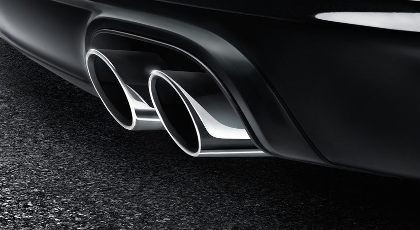 Two twin tailpipes with a unique look, made from chrome-plated stainless steel.