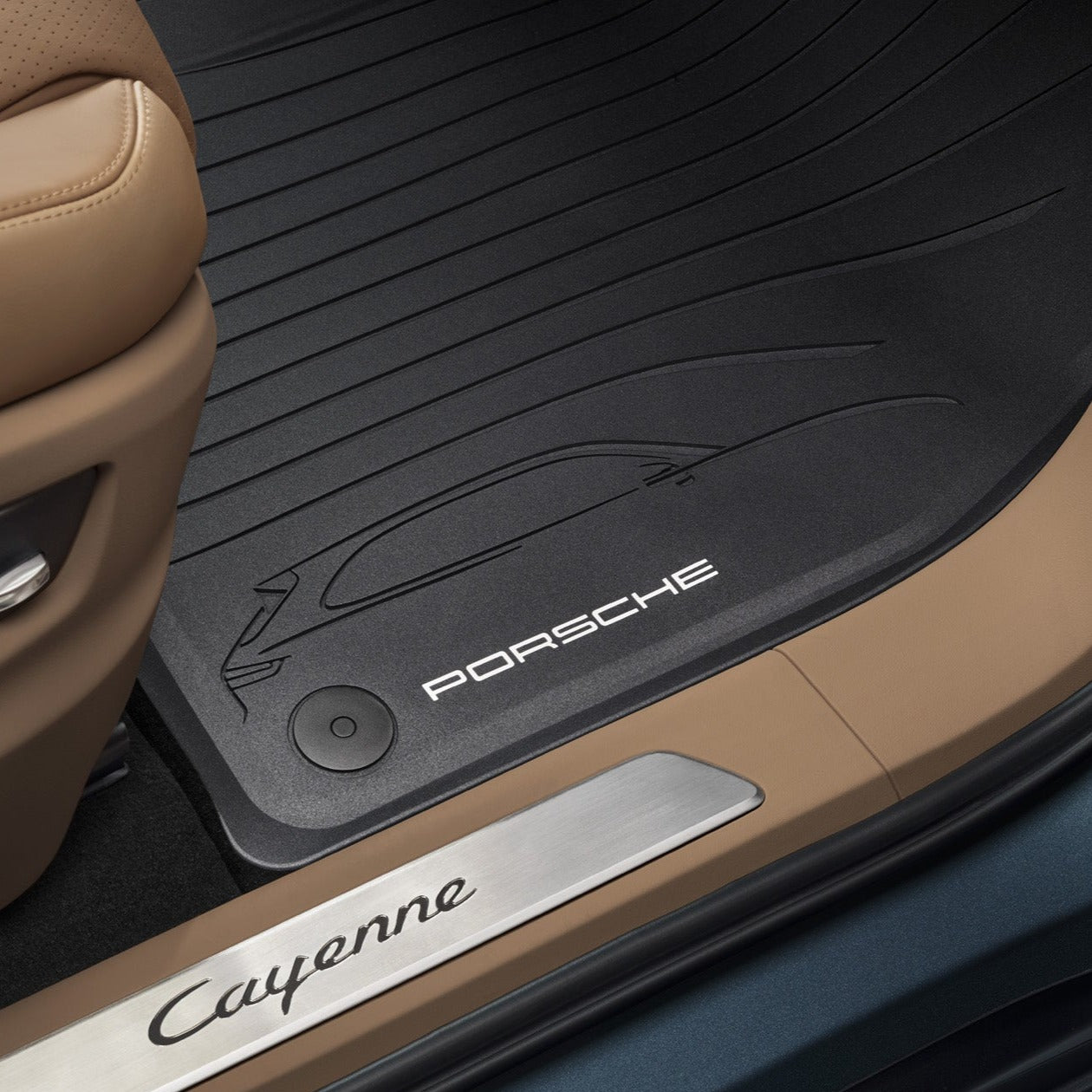 The interior of your Porsche can suffer a lot from the weather, especially in the autumn and winter season. Mud feet or sand can leave stubborn stains in your carpet. Therefore, protect the interior of your car with this 4-piece rubber mat set. Attractively designed with the silhouette of the Panamera and the 'PORSCHE' logo. With a rising edge so that dirt from your shoes does not end up on your carpet.