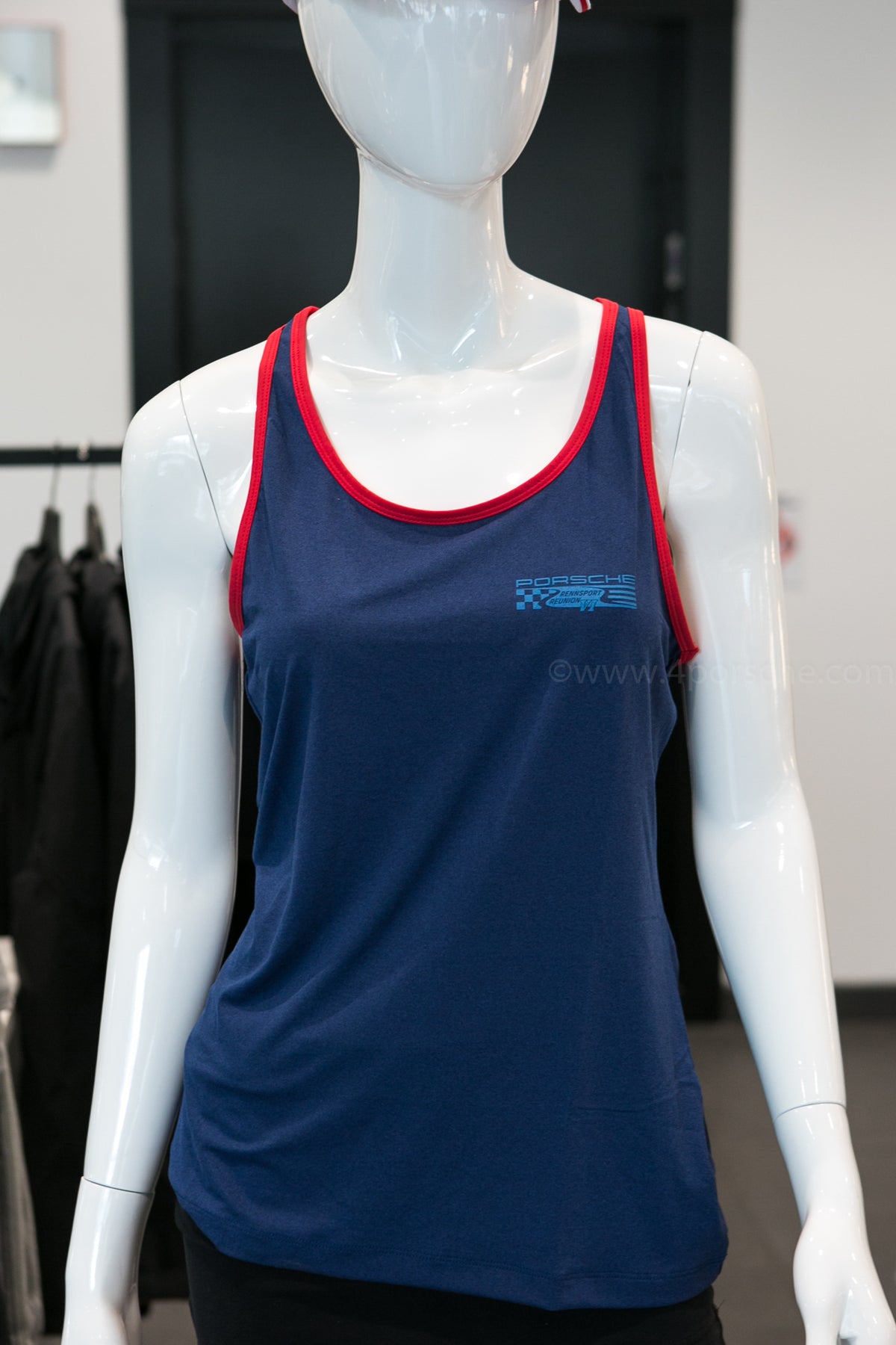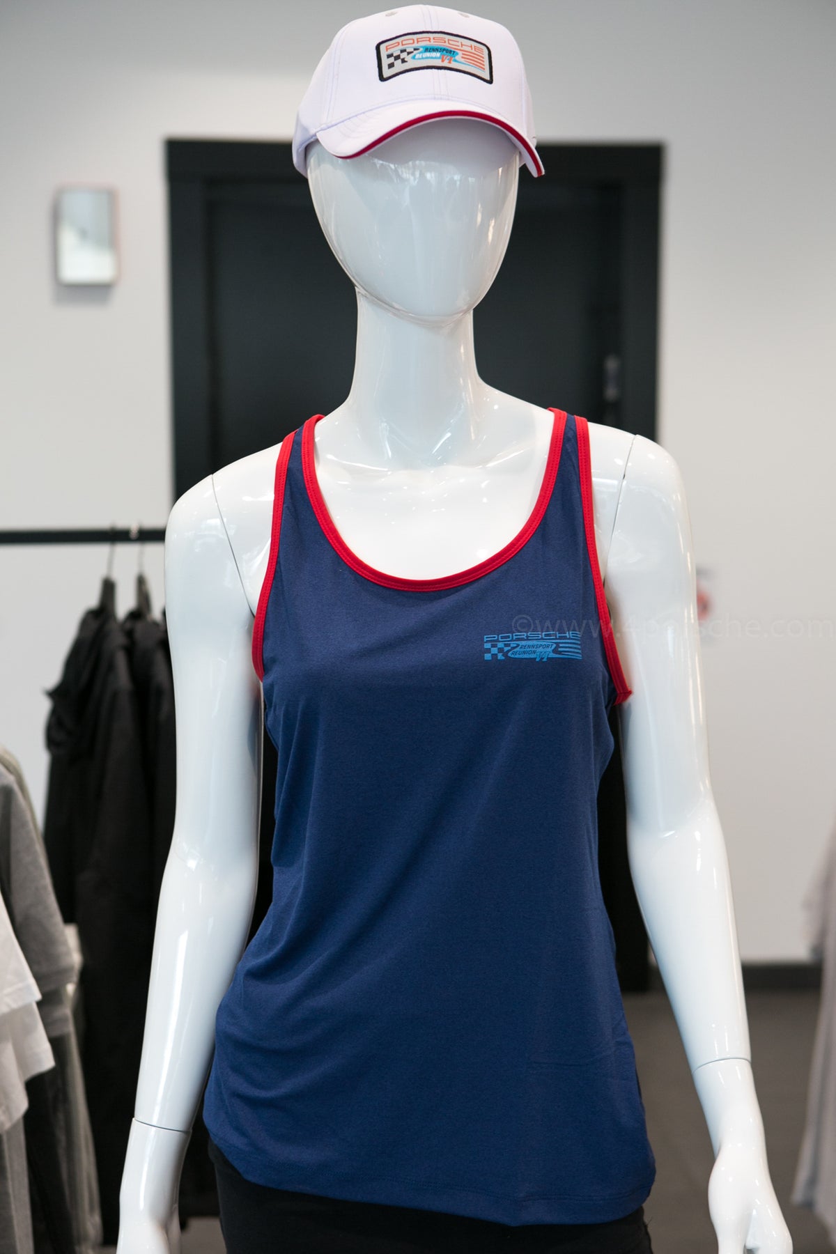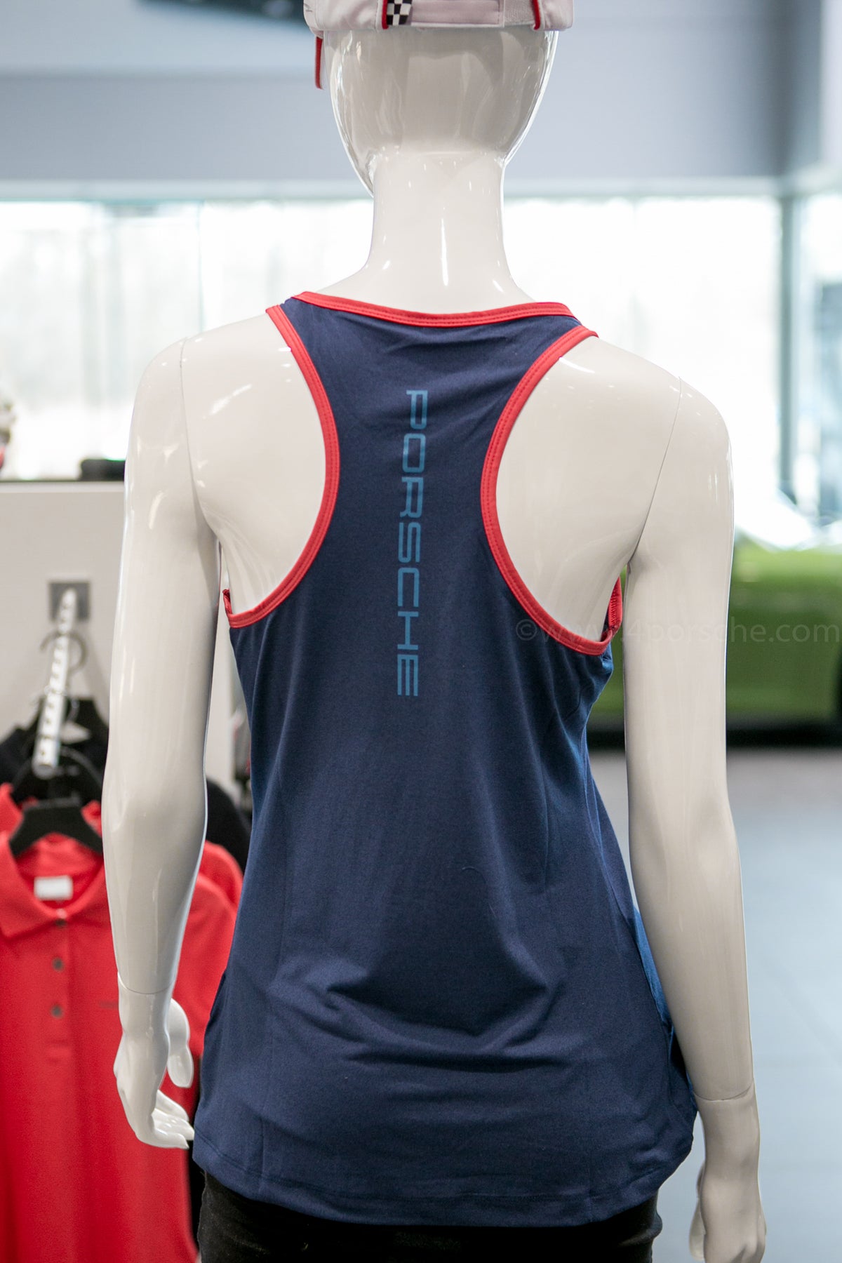 Rennsport Reunion VI ladies racerback with Porsche lettering on the back