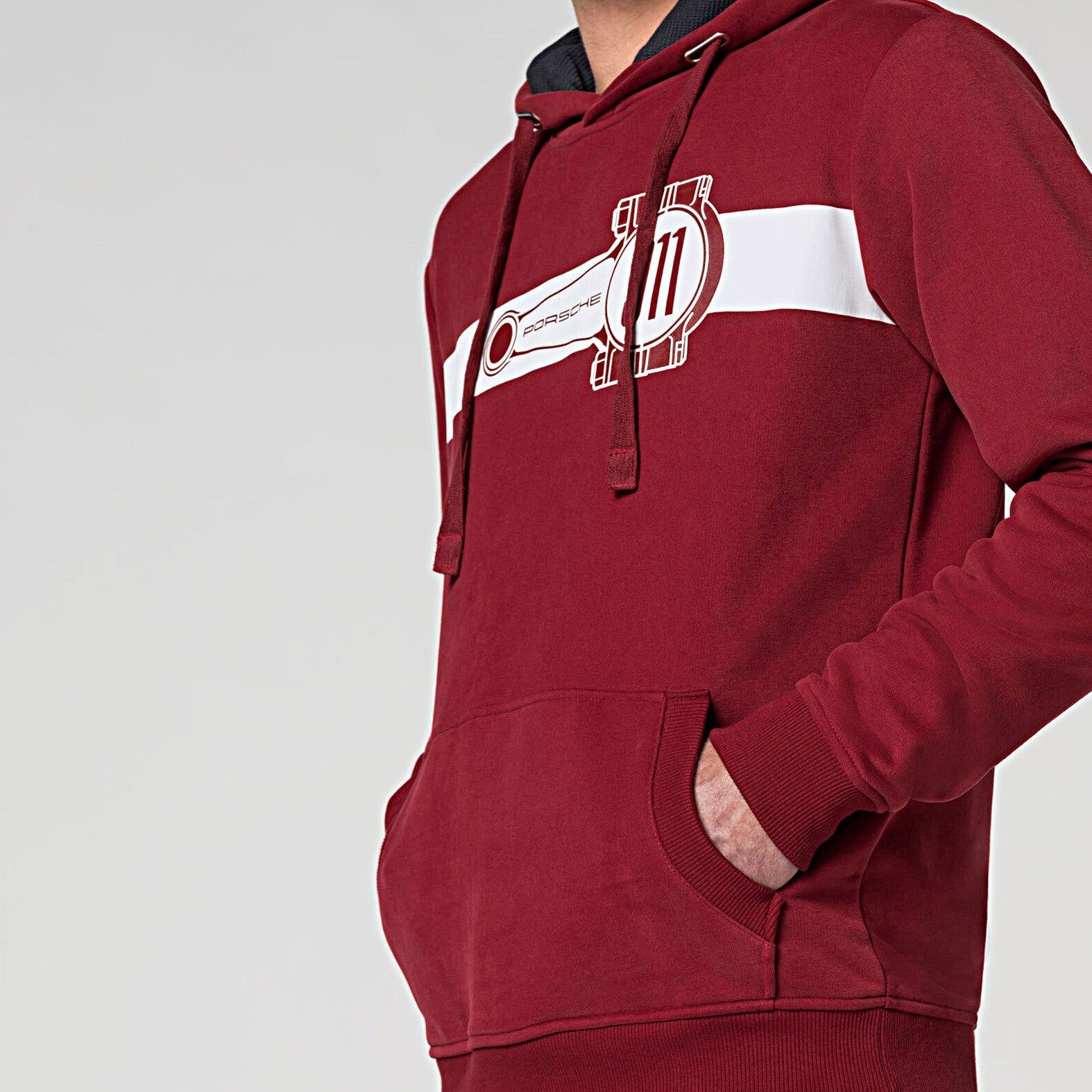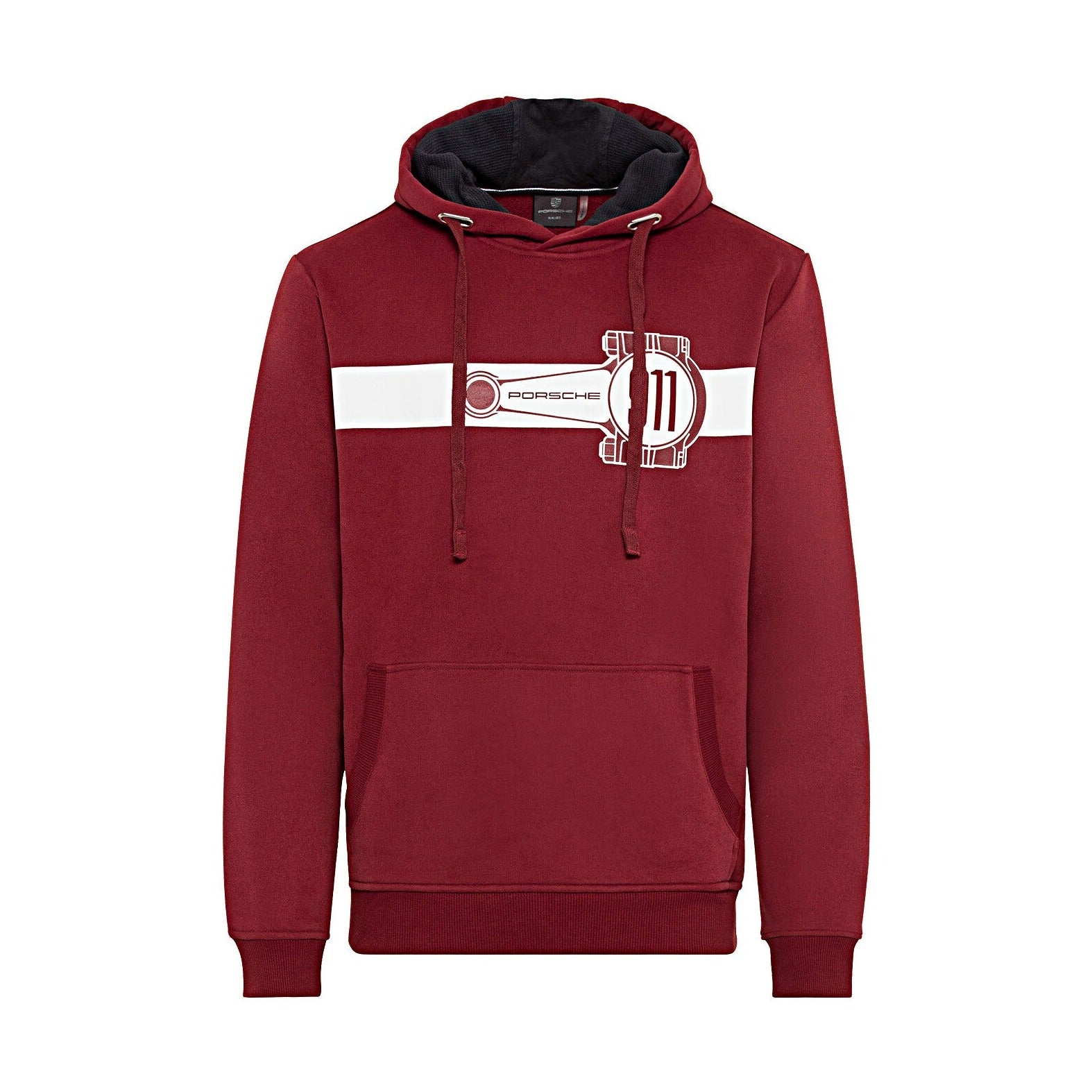 Exclusive design, maximum comfort: the Porsche hoodie with a high-quality connecting rod print on the chest. The pouch pocket offers space for personal items or a place to keep your hands warm. The soft, lined hood also ensures optimal comfort. The high-quality metal eyelets for the wide hood cords and the loop label on the back hem set subtle yet exclusive accents.